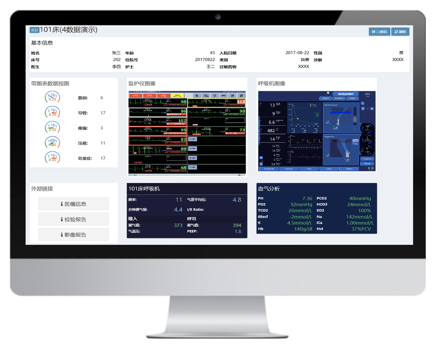 實(shí)時(shí)呈現(xiàn)病人體征參數(shù)、變化趨勢(shì),診療設(shè)備參數(shù),同時(shí)接入醫(yī)囑、檢驗(yàn)結(jié)果數(shù)據(jù),一體化呈現(xiàn)存儲(chǔ)和回溯,方便醫(yī)護(hù)急救、會(huì)診、查房